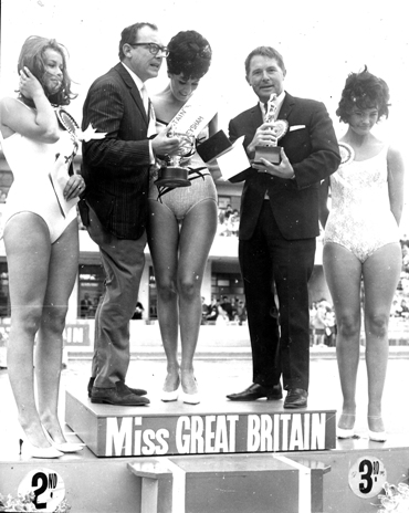 One of Britain's best loved comedy double acts Morecambe and Wise judging Miss Great Britain in 1965