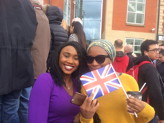 Daisy Kiptoo, from Kenya, and Fatima Mohammed, from Nigeria, are both Master’s students. They arrived at 8an to get a spot and cheered as the Queen and the Duke of Edinburgh drove past in a chauffeured Bentley.