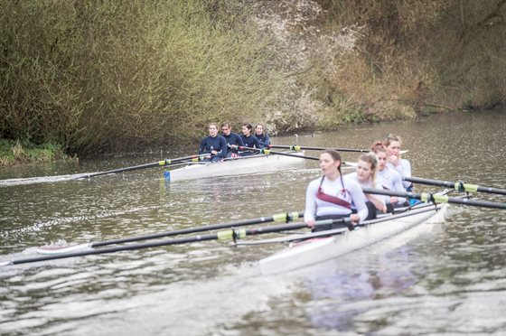Students and staff lined the River Soar in the pouring rain and biting wind to witness the famous Rowing Varsity on the stretch between Castle Gardens and Liberty Island.