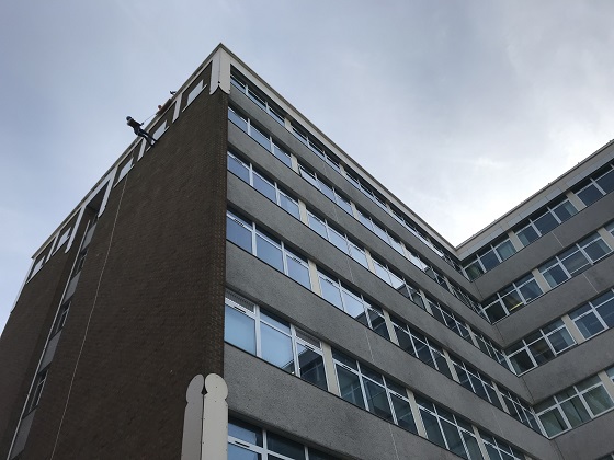 Students and staff proved they had a head for heights when they tackled a 100ft descent down a landmark building at De Montfort University Leicester (DMU).