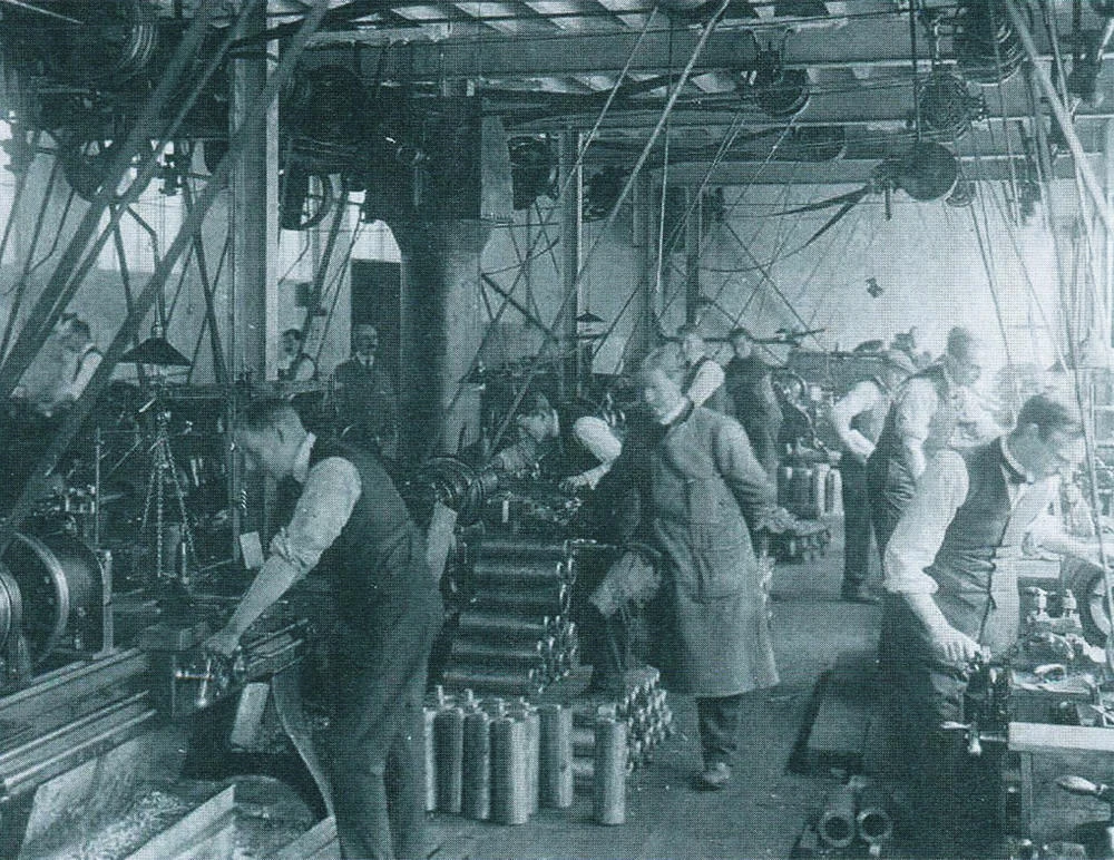 The work was expanded to include the manufacture of fixtures for gun primers, punches and dies for drawing cartridges, shell bases, screws and pins.