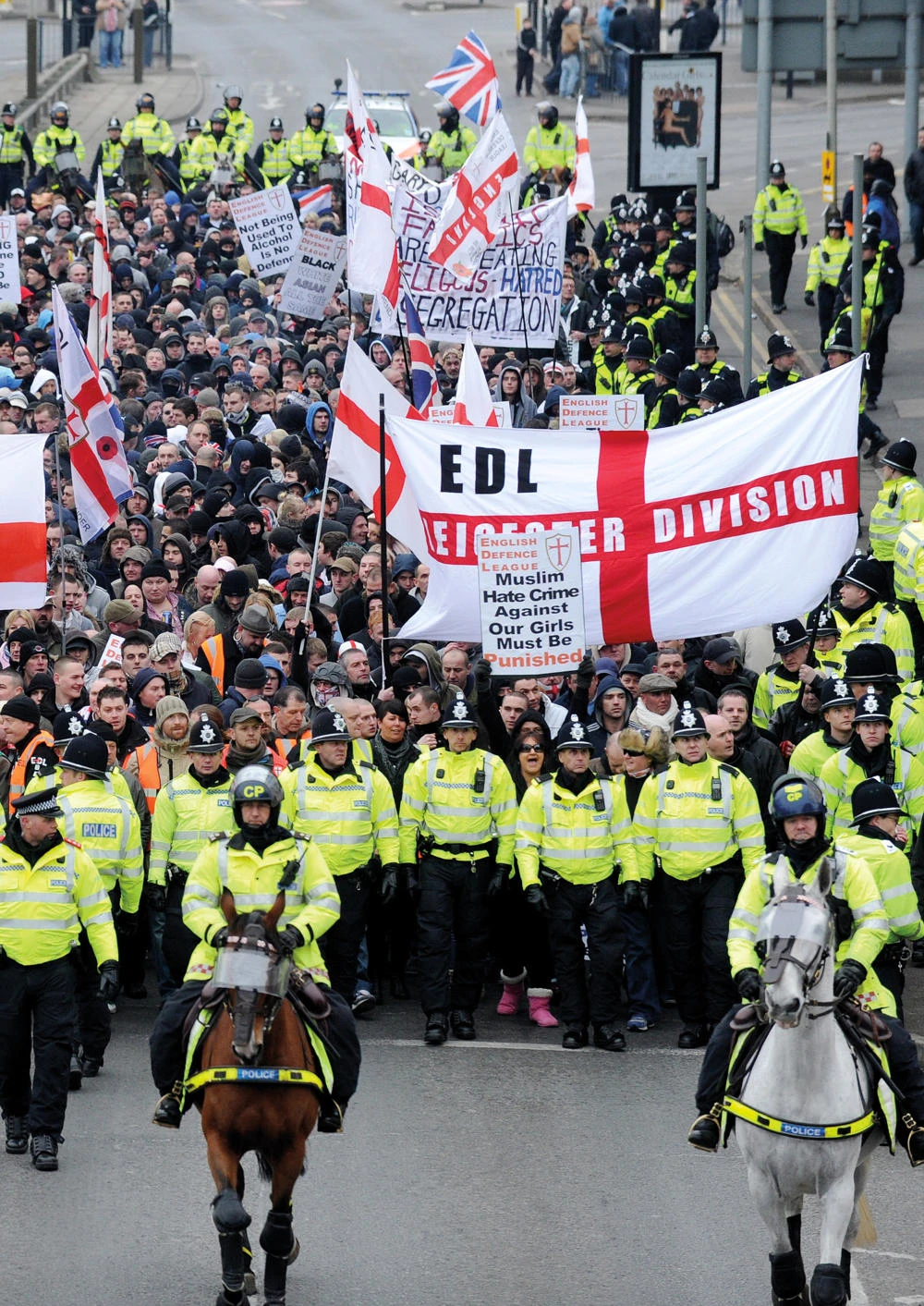 During an earlier English Defence League visit, in 2010, the local community suffered a number of attacks, supposedly because the EDL had reacted violently to being hemmed in by police. In 2012, a new strategy was devised: instead of ‘kettling’ the EDL, its supporters would be allowed to pass unhindered through the city.