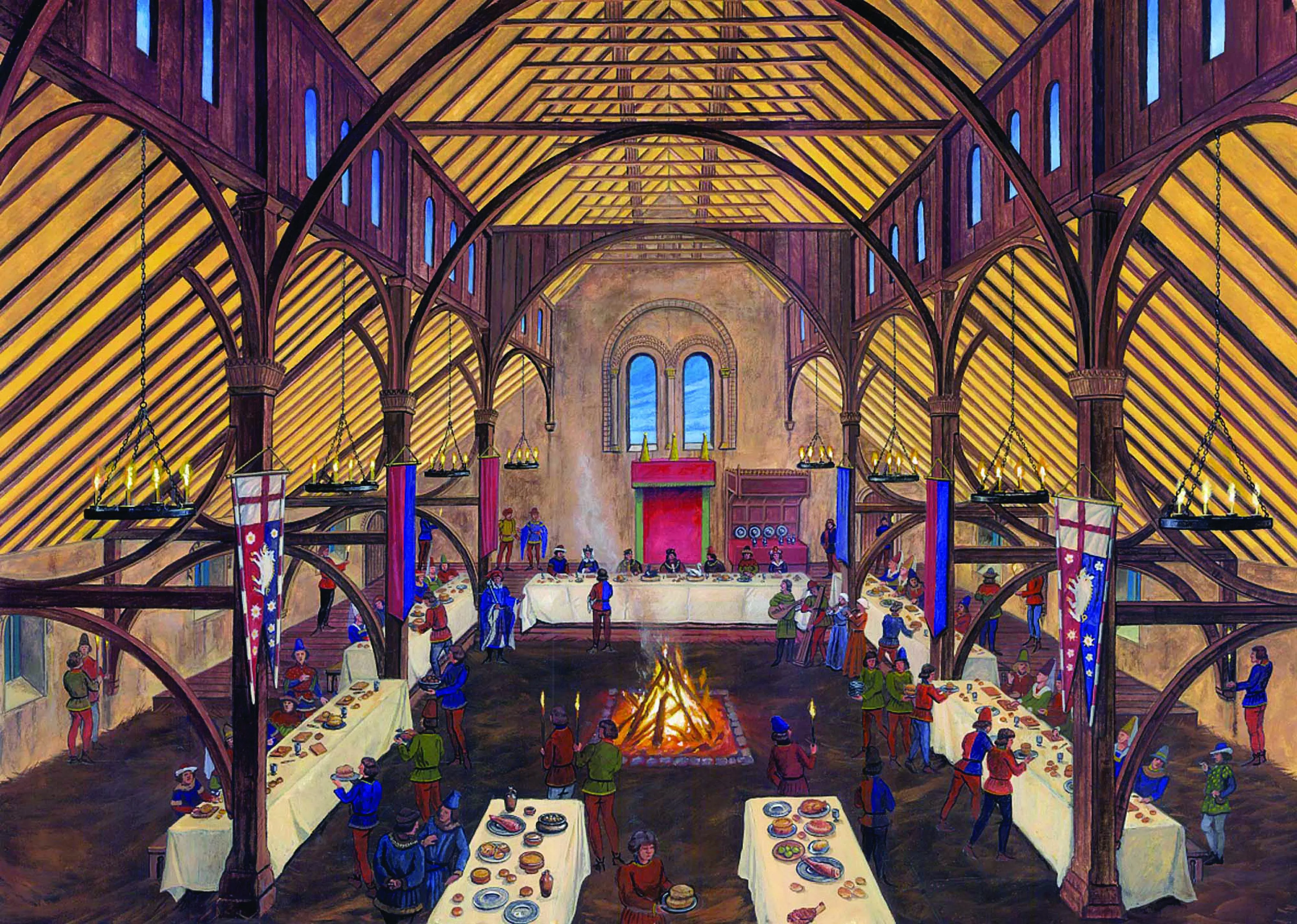 In the Leicester Castle Great Hall on the side of the river Soar, standing atop a pedestal is a large twelth century timber capital.