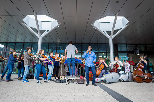 The Street Orchestra of London stopped by on their tour of Leicester
