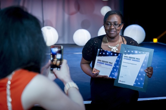 Amy Katiti won Outstanding Engagement Award for working with After 18, which helps young unaccompanied refugees by giving them extra learning support and help applying for university.