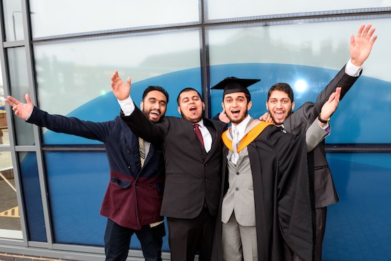 (pictured below) are past masters at graduations – as Architecture students, this was their third ceremony in their seven-year course. “We’ve done De Montfort Hall, Curve and now the Venue so although I’m very proud there’s a great feeling that finally I’m qualified!” said Daniel. “Architecture has been a brilliant course,” added Chris.