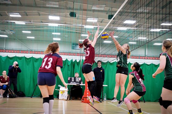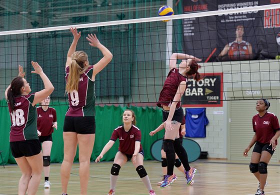 Sarah in action for the DMU Dragons Women's Volleyball team in Varsity at Leicester Arena last month