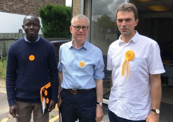 Alieu Ceesay with Dick Newby, Leader of the Liberal Democrats in the House of Lords, and the Rt Hon Tom Brake MP