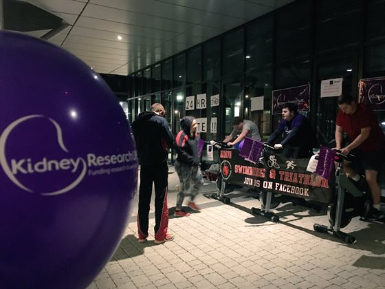 Students on the Swimming and Triathlon team at De Montfort University Leicester (DMU) gathered outside in the bitter cold this week, for a 24hr static cycle raising money for Kidney Research UK.