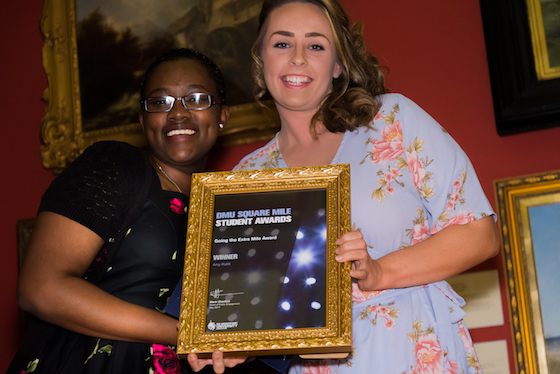 Accolade: Amy, left, being presented with her award by Square Mile's Debbie TinsleyHer dedication was recognised at the DMU Square Mile Awards when she was named the winner of the Going the Extra Mile Award, given to volunteers who show an incredible amount of dedication and go above and beyond to make a difference.