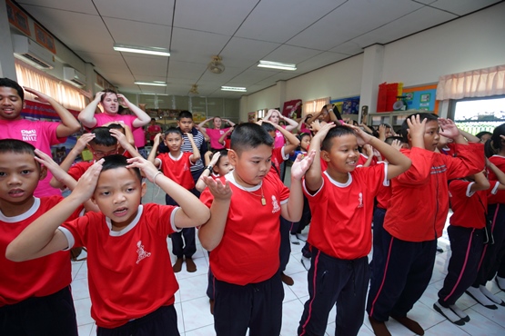 The students have been spending the week in the Thai capital helping to teach English as a foreign language to children aged 10 and 11, running workshops and fun activities focused around speaking English at Wat Bang Chalong School, in Bangkok province.