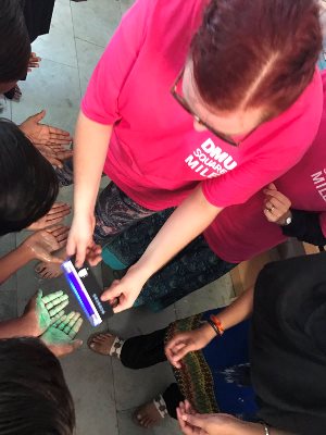 Some of the sessions involved up to 150 children at a time. The team also worked with staff at the ashram and schools to continue their health hygiene work after they have returned to DMU.