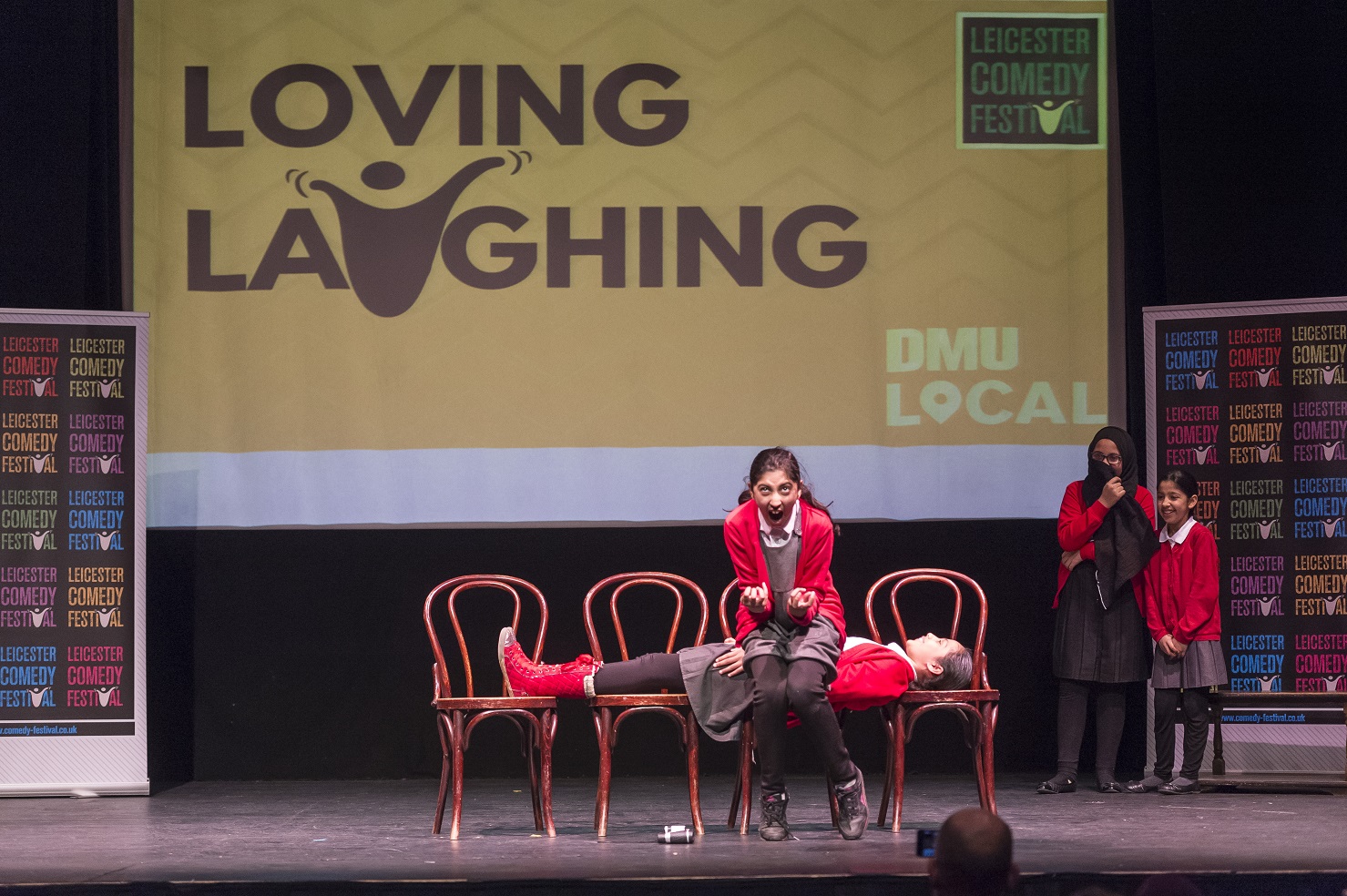 De Montfort University Leicester (DMU) has been running comedy workshops at schools through #DMUlocal, which culminated with four schools performing their favourite comedy routines on stage at the Y Theatre on Wednesday.
