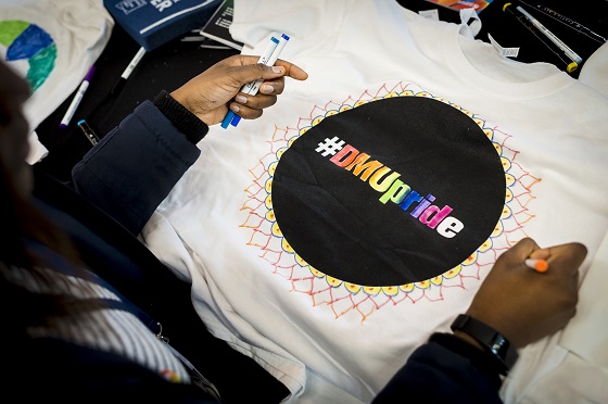 Today’s launch at the Campus Centre saw dozens of #DMUpride T-shirts and rainbow cupcakes being given out to students.