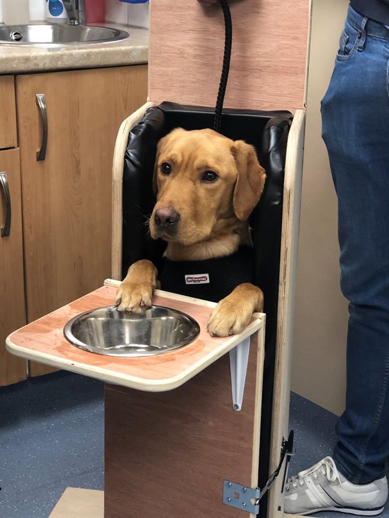 Nick said: “I’m just so pleased with how it fits, how comfortably he sits in it and how happy he is to be fed like this. He is the same width in his shoulders as our own 5 kilo Jack Russell, so without meeting Buck ourselves, we had to double check his measurements during the build – it just didn’t seem right for a big dog like a Labrador.”