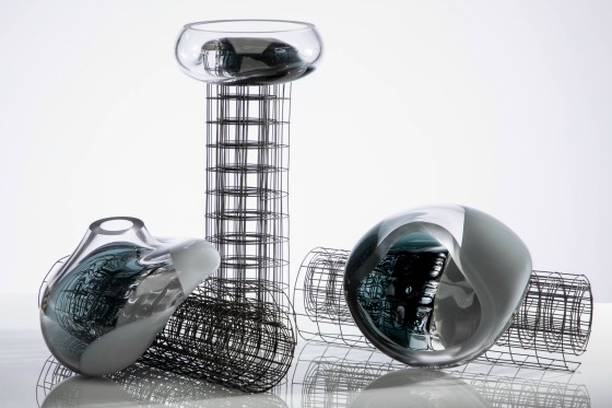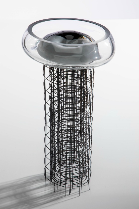 Inspired by the industrial architecture in her hometown of Birmingham, Morgan creates her sculptures by blowing hot glass into and onto steel wire moulds, resulting in unique pieces.