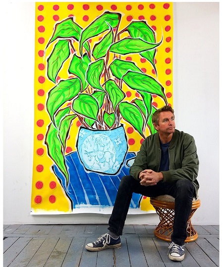 Some 16 large-scale paintings – colourful, vibrant work inspired by his love of travel – are already packed and delivered to the Artplex Gallery in California ready for his solo show. And Jonjo himself will follow in a week with his family for the grand opening.