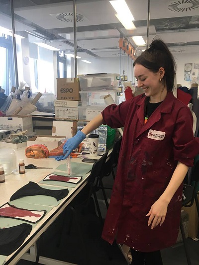 Sian carries out a test at DMU textile labs using artificial blood