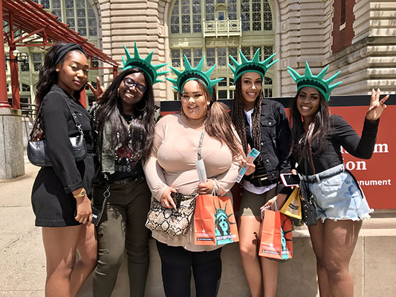The students are exploring the identity and success of black and minority ethnic communities in the Big Apple, with day one focused on the former immigration inspection station which is now a museum honouring the USA's immigrant heritage.