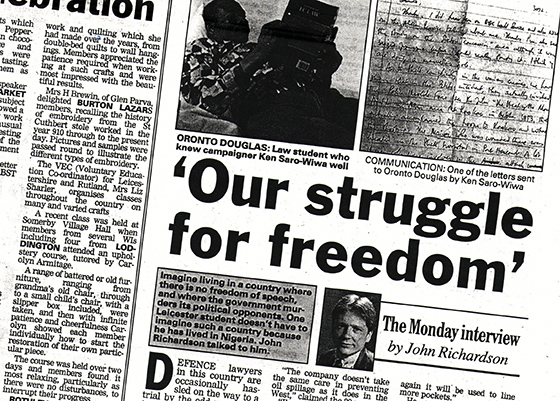 Oronto, who was born in Nigeria in 1966, became a key campaigner against the environmental destruction and polluting effects of oil production in the Niger Delta – a densely populated, petroleum-rich region in Nigeria.