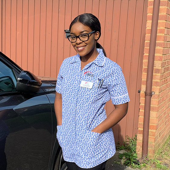 De Montfort University Leicester (DMU) student and care worker Charmaine Binga is supporting the elderly and vulnerable in the fight against the coronavirus.