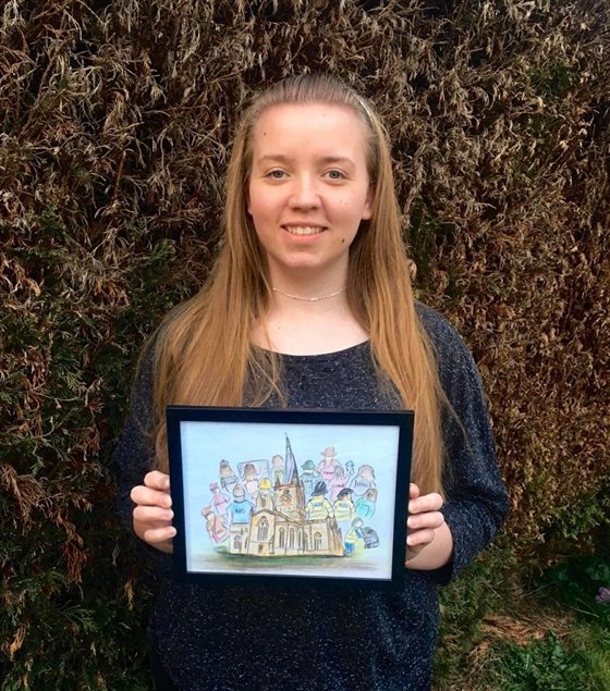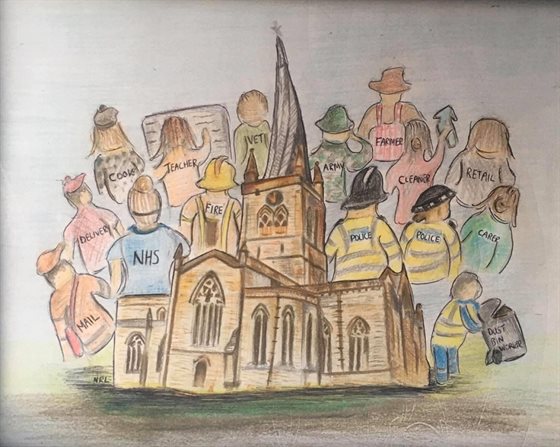 After her first artwork, showing frontline health workers gathered around Chesterfield’s ‘Crooked Spire’ Church, appeared on her Facebook page, Nicole began to receive both praise and requests for further work.