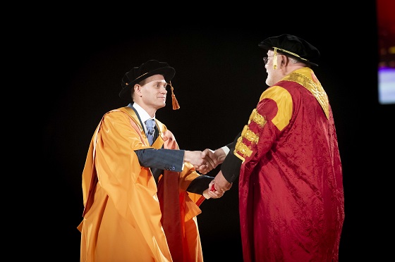 Addressing graduates from the Faculty of Computing, Engineering and Media (CEM) the now Dr David Banner said: “I am delighted and humbled to accept this award today. I was a very shy man from the Welsh valleys when I arrived in Leicester but I can remember sitting where you are today and how proud my mum and dad were.