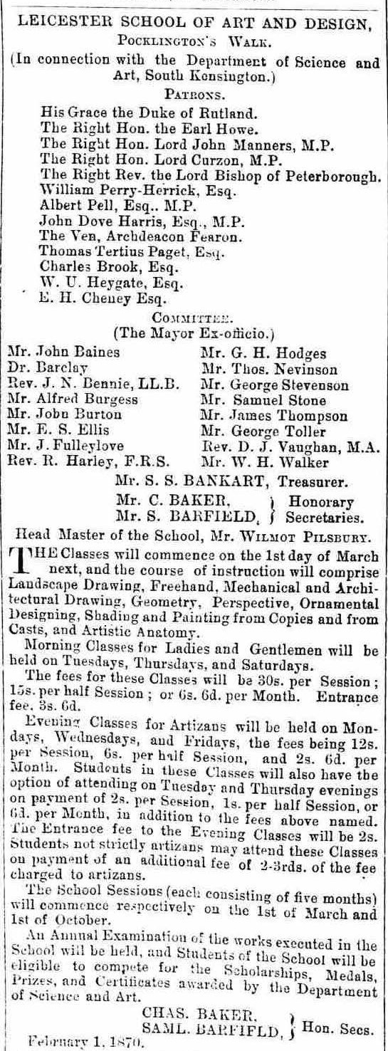 1870 Leicester School of Art opens.