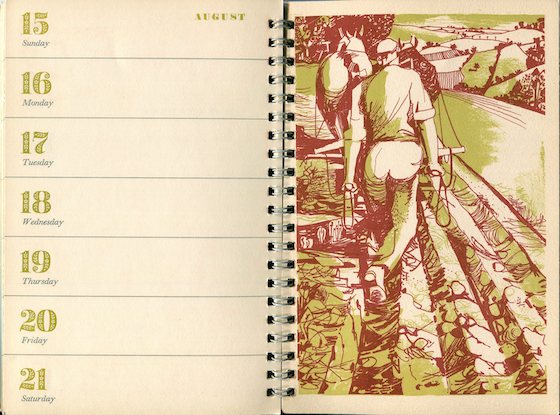 1950s: An example of the diaries produced by staff and students from Leicester College of Art. This one, from 1954, is by Rigby Graham who drew Leicestershire landscapes.