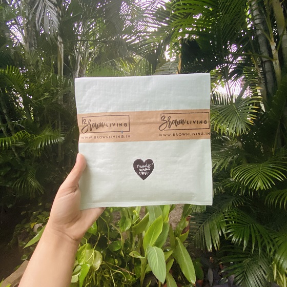 Most recently she has worked with Tea India and Brownliving, which ships goods around India in 100% plastic free packaging, using tape made of kraft paper and starch-based glue, which is activated with a spray of water.