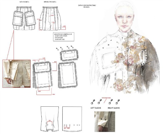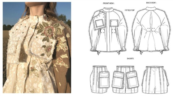 Emelia’s technical drawings are based on a collection inspired by treating old and vintage garments or fabrics as a blank canvas.