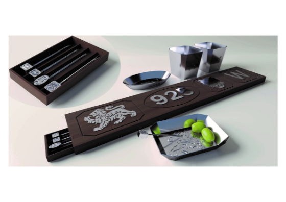Isabella entered the competition as a way to explore new software while working to a live brief. She impressed the judges with a collection of whiskey tumblers, olive plates and picks presented on a wooden tray and all carrying the hallmark design.