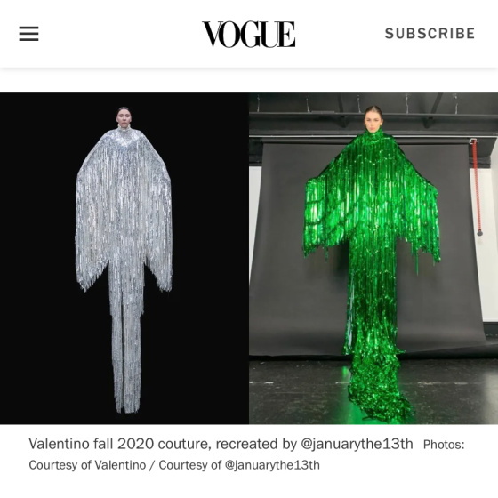 Sallyanne’s stunning take on an iconic Valentino gown from the autumn 2020 collection was one of 20 looks selected by Vogue – including one submitted by former Victoria’s Secret Angel model Heidi Klum - and featured on Vogue.com, as well as @voguemagazine and @voguerunway on Instagram.
