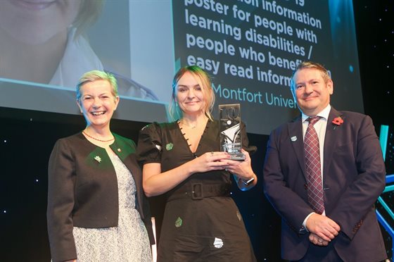 In front of a packed function room at Grosvenor House Hotel in London, second-year Learning Disability student Giane Bishop from Leicester won the Student Innovation in Practice Award at the Student Nursing Times for the poster, which has already been used across the country and overseas, in New York.