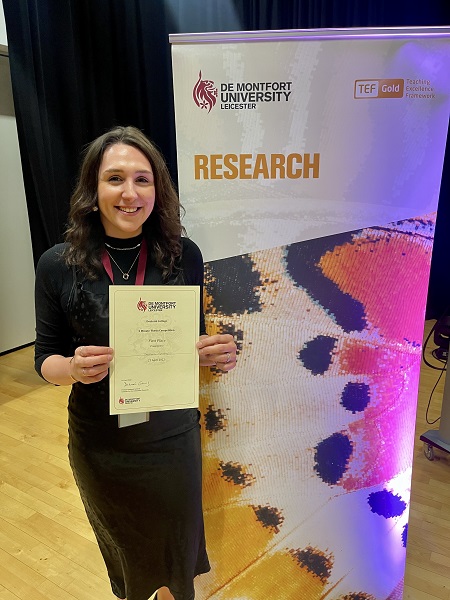 “This was the first time I’ve ever taken part in the Doctoral College Showcase so I am completely over the moon to have won and that I now get to represent DMU at a national level,” she said.
