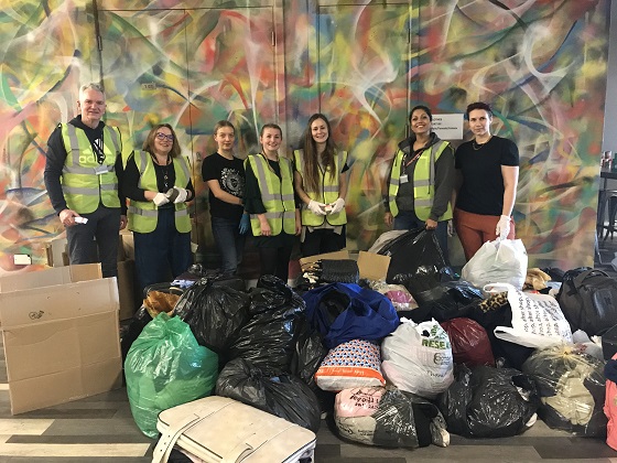 Volunteers sorted through hundreds of items of clothing and toiletries