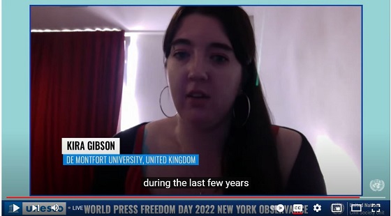 A journalism student says it was ‘an amazing feeling’ to be the only person from the UK selected to ask a question at a United Nations conference marking World Press Freedom Day.