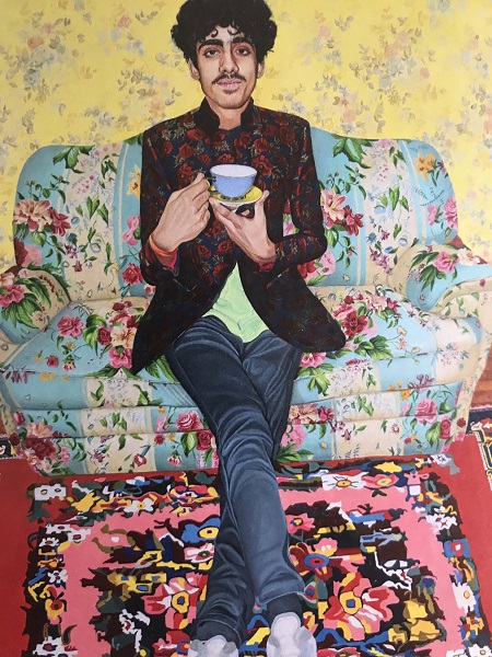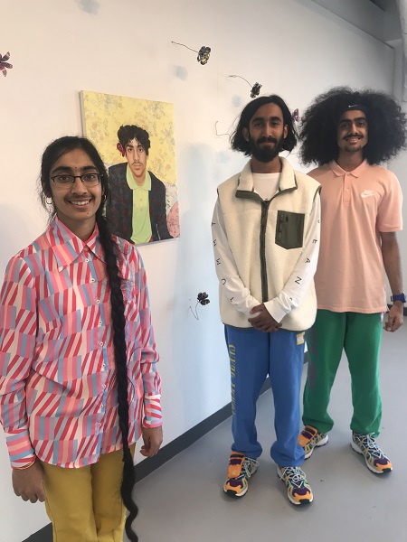 Jemisha Maadhavji, from the Belgrave area of Leicester, has painted portraits of her brothers and surrounded them with metal flowers.