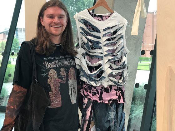 Luke Harthen, from Cheshire, is studying the MA in Fashion and Textiles and produced radical clothing including a cut up and layered shirt which looked like a rib cage.