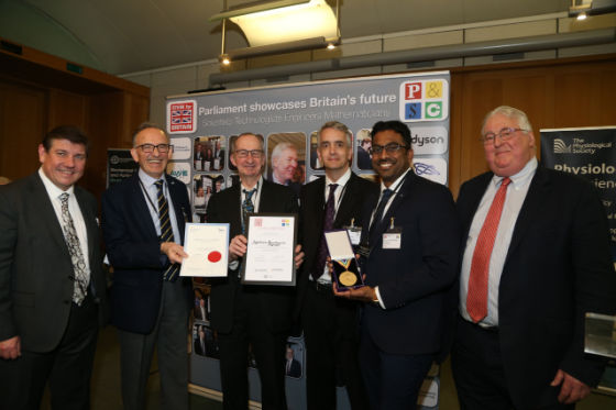 Yogesh, second from right, with academics and industry members after receiving his Gold Medal at the STEM for BRITAIN 23 presentation