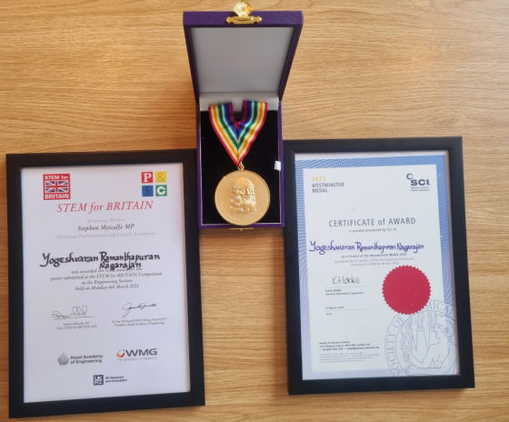 Yogesh’s STEM for BRITAIN 23 Gold Medal