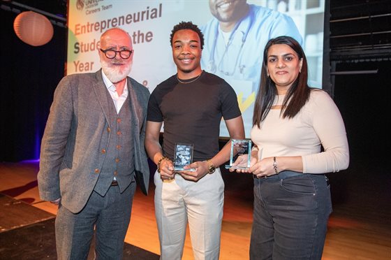 Melvin Riley and Komal Shahzadi – Student Entrepreneur of the Year, presented by Director of Library and Student Services David Parkes