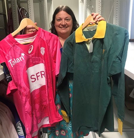 Katharine with Stade Francais and Australia rugby shirts