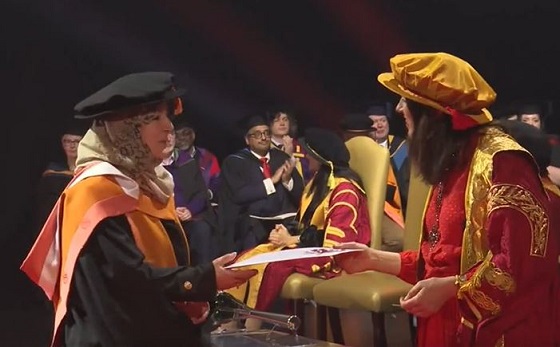 Dr Elmajnoun receives her PhD from Vice-Chancellor Prof Katie Normington