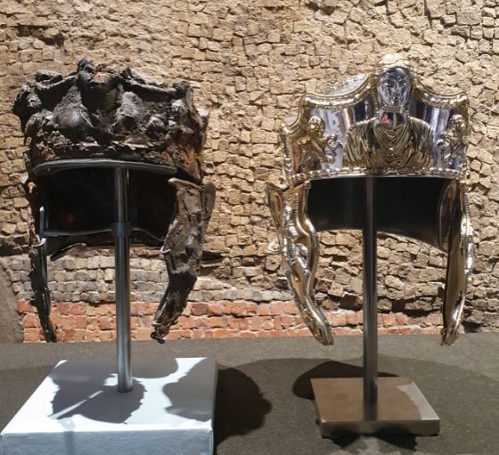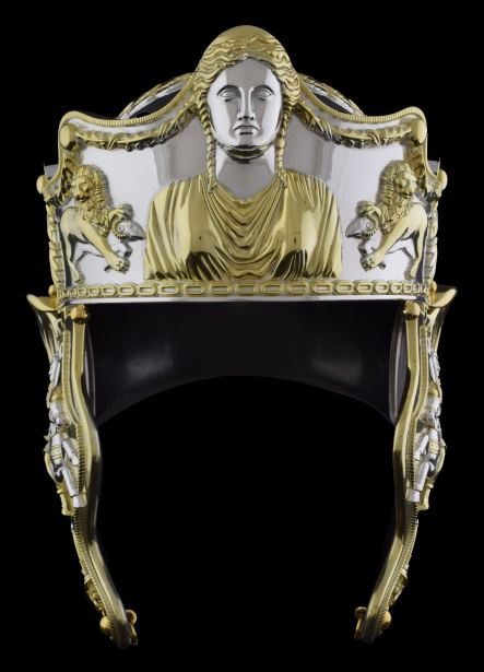 Mr Gogna, whose research practice focuses on blending new technology with craft practice, took illustrations and details and used CAD modelling and 3D printing to create a re-creation of the helmet which was electroformed, then silver plated and gilded with gold, which he then finished by hand.