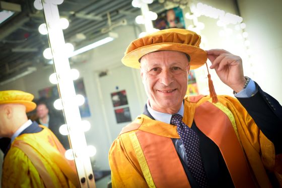 Maher receives his honorary degree on stage at Curve theatre