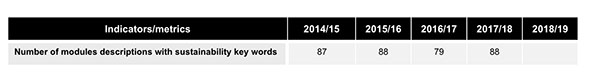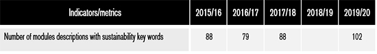 One of the mechanisms for monitoring our progress in this area by analysing module and programme descriptions to see the extent to which key sustainability words have been included. This is then reported to the university’s Sustainable Development Task Force which includes Dr Andrew Reeves, who is responsible for the progress of Education for the Sustainable Development Goals. Details of progress in this area is shown below.