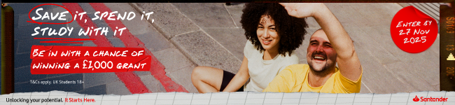 Enter by 27 November for the chance to give yourself a Brighter Future with a £1,000 grant to enhance your student life. T&Cs apply.