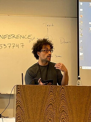 In May 2021, he was artist in residence at the annual conference of the research network for critical theory (T)Error on Tour at Malmö University (Sweden). His scholarly publications have appeared in journals like Linguae &, Review of Irish Studies in Europe, Das Brecht Jahrbuch/The Brecht Yearbook, and Performance Research.