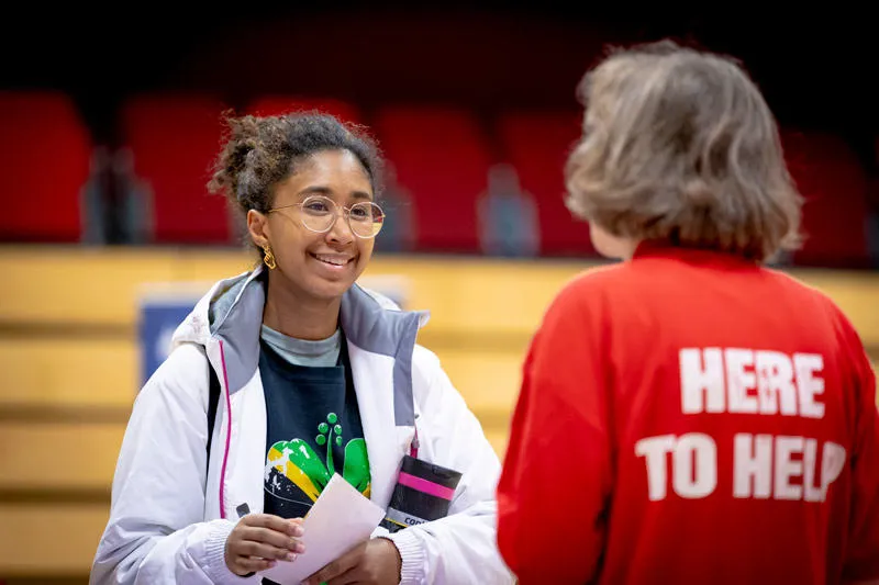 You can check in before or after the Welcome to DMU talks at 9:25am and 11:25am. Simply head to your designated check-in location (listed below), where you'll receive a check-in code to enter into the form.